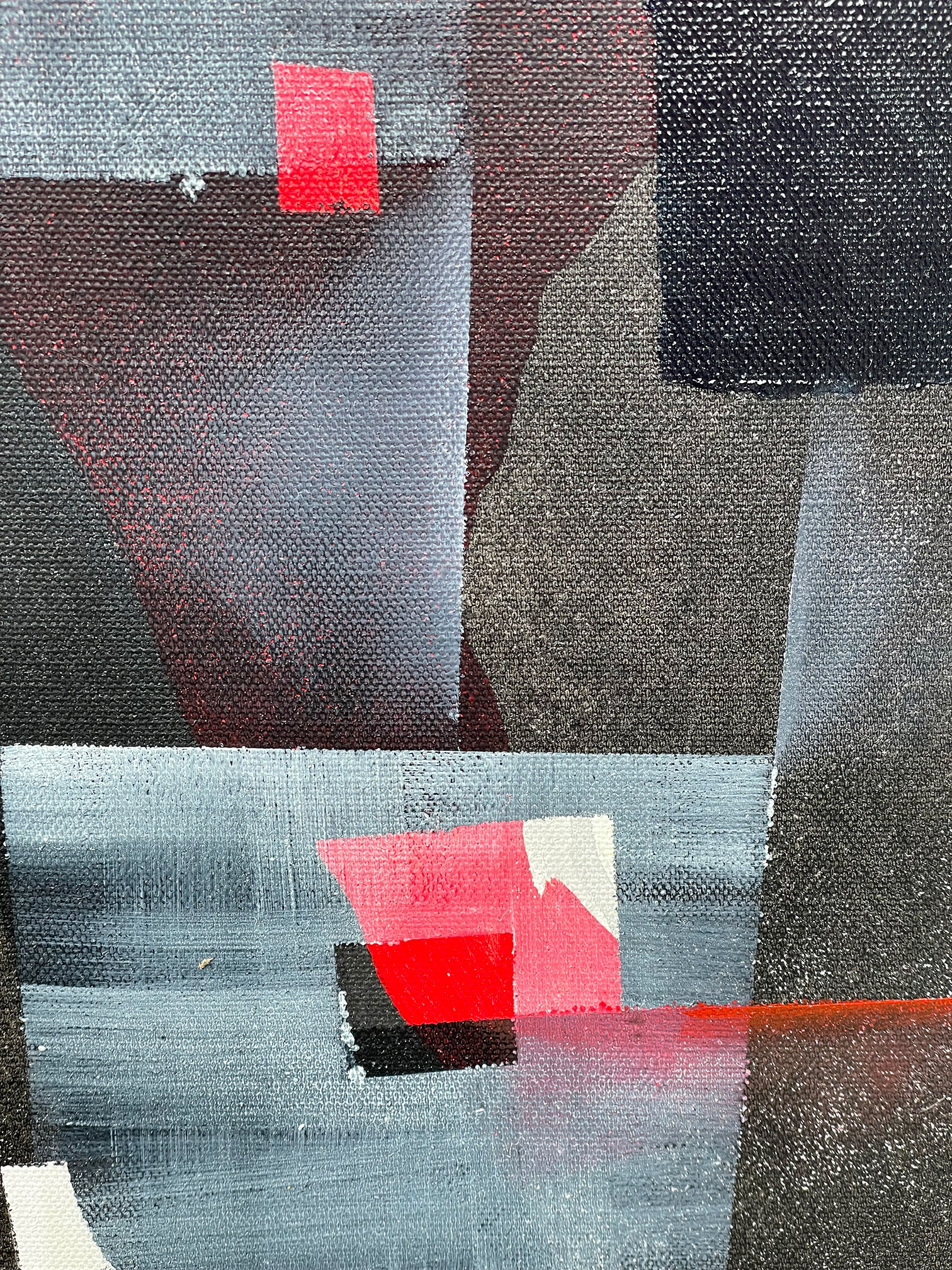 Started in 2010, returned to in 2026, and you can feel both moments in it. The figure is colder here, more fractured, a pale face barely holding together against a near-black world punctuated by flashes of red. Those hands at the bottom — always there, always intentional — anchor the whole thing in something visceral and unresolved.